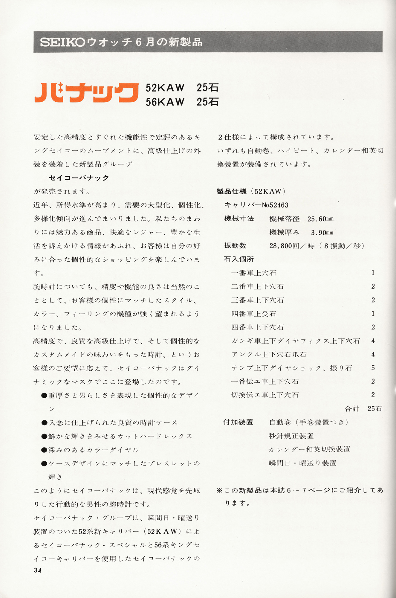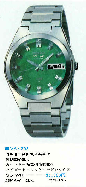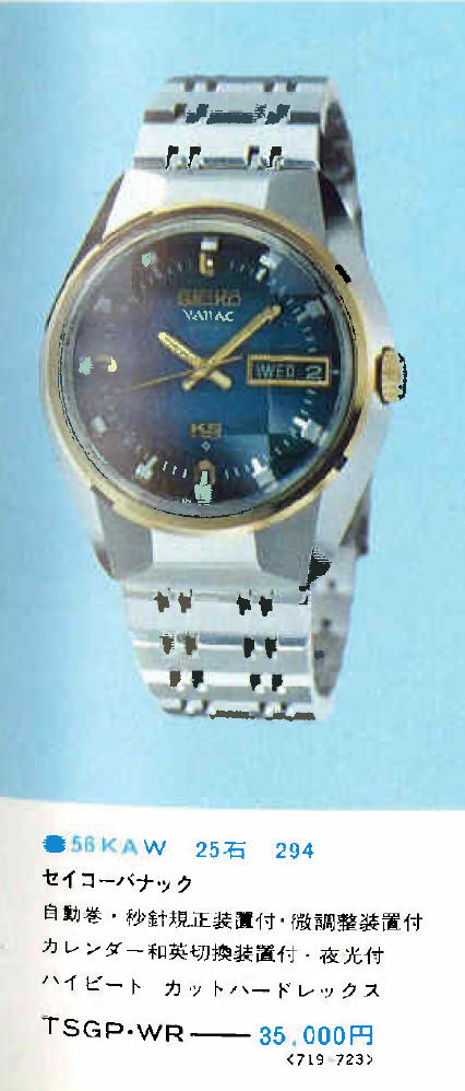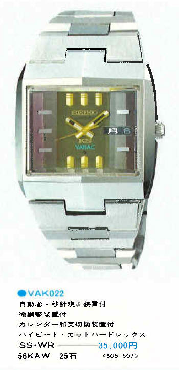The Seiko brochure from June 1972 introduced the VANAC series with 10 first models described: